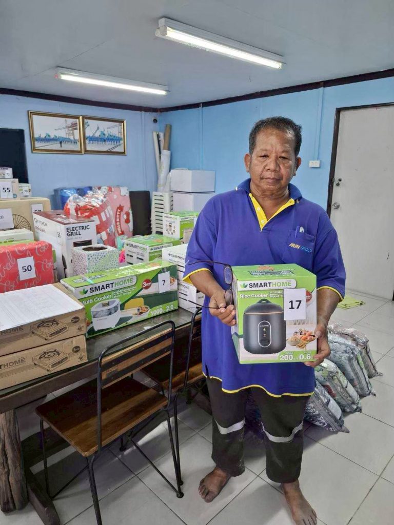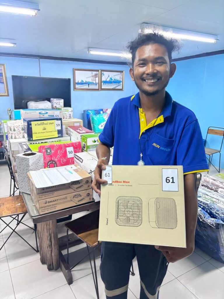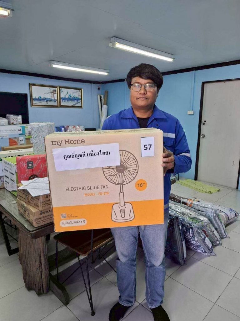 จัดเตรียมของขวัญเพื่อให้พนักงานจับฉลากคนละ 1 ชิ้น และมีรางวัลใหญ่อีก 5 รางวัล เพื่อแทนคำขอบคุณที่พนักงานได้ร่วมแรงร่วมใจกัน